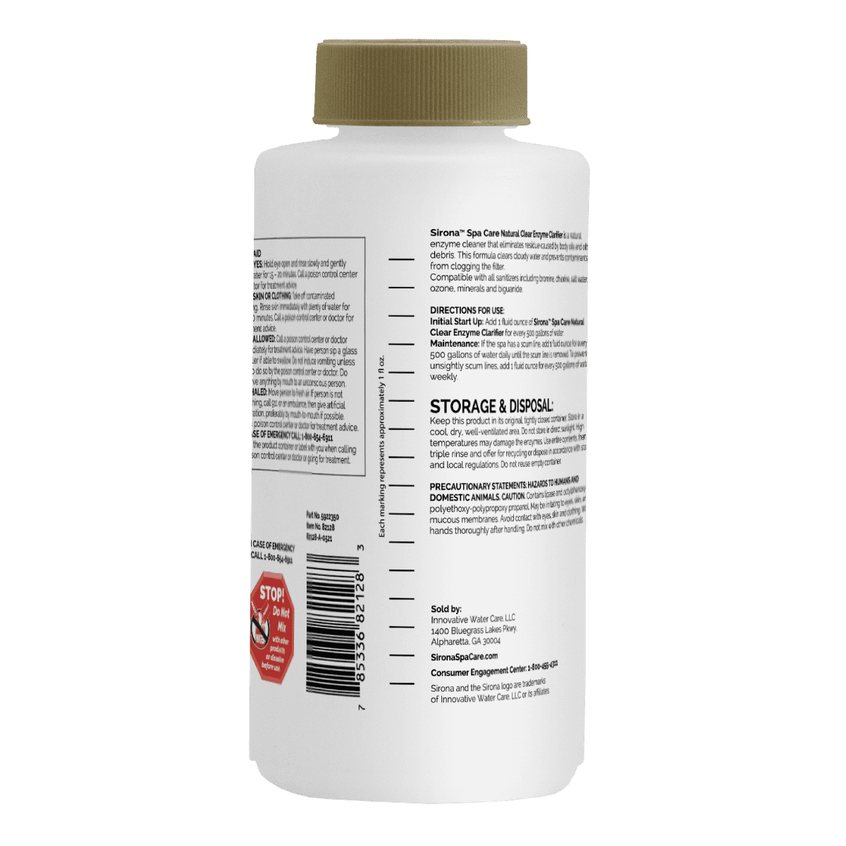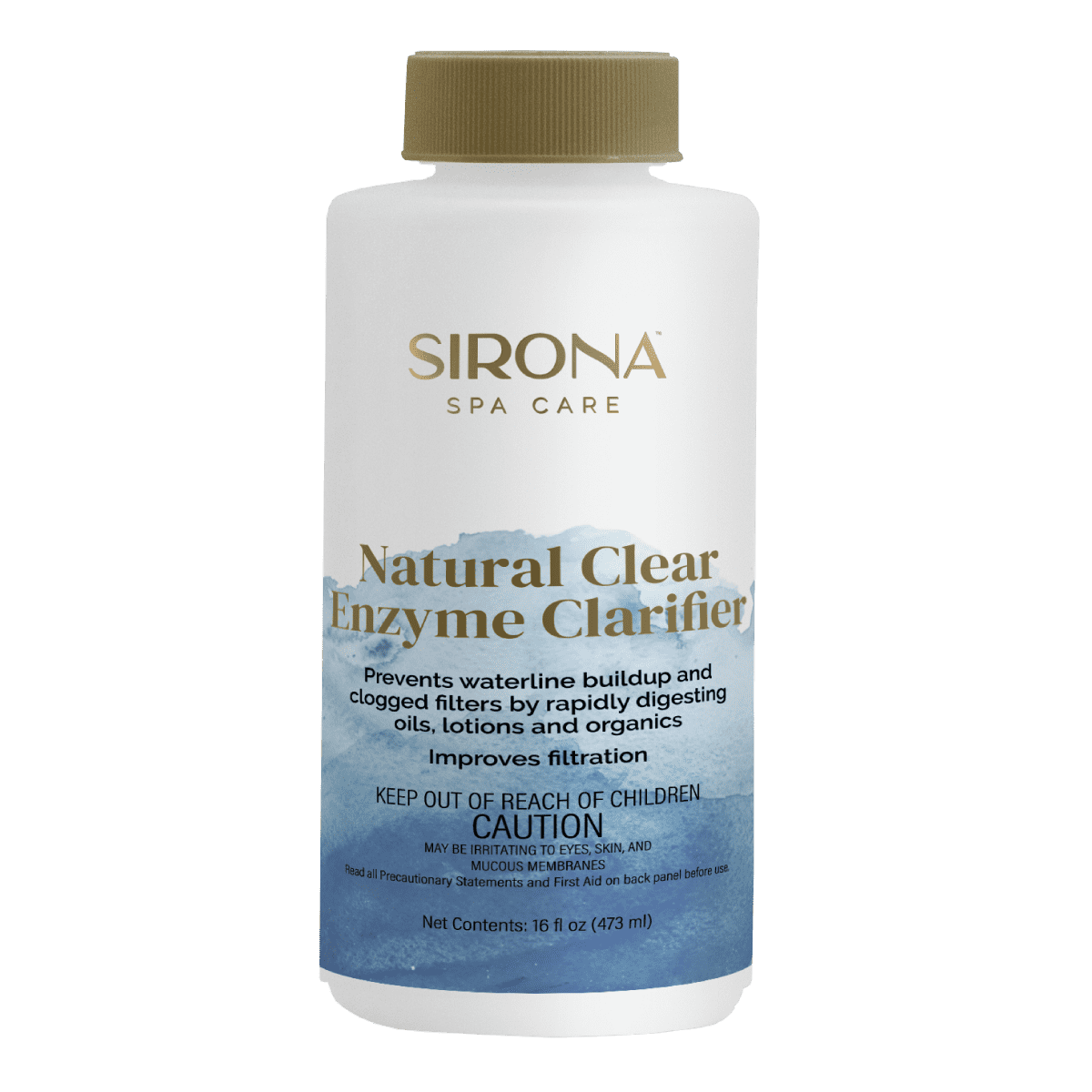 Our spa enzyme clarifier is a natural blend of enzymes to rapidly eliminate unsightly residue, scum lines and odors caused by body oils, lotions and other debris. It also clears cloudy water and helps reduce the need for maintenance of filters and spa surfaces, so you can remain worry-free.