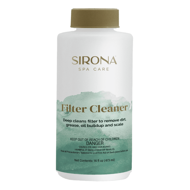 Take the work out of filter cleaning. The Sirona™ soak-and-rinse, concentrated hot tub filter cleaner formula deep cleans filters to remove scale and mineral buildup as well as dirt, grease, oil and other organic material.